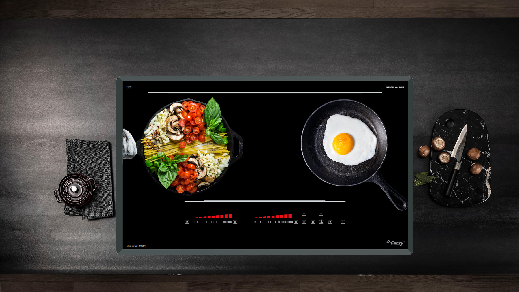 * Bếp từ Canzy CZ 686DP được tích hợp chức năng tự nhận diện vùng nấu, khi ta đặt nồi lên 1 trong 2 vùng nấu sau đó ấn nút khởi động bếp sau thời gian 1-2 giây bếp sẽ tự động tìm vùng nấu đã có nồi, ta chỉ việc điều chỉnh mức công suất to nhỏ theo ý muốn mà không phải thao tác chọn vùng nấu như bếp thông thường. Công nghệ Half-Bridge Inverter của tập đoàn E.G.O được áp dụng trên bếp có khả năng phản ứng thay đổi công suất theo điều khiển ngay tức thì, khi người dùng điều chỉnh tăng giảm nhiệt độ đun nấu, bếp điều chỉnh thay đổi tức thì về mức nhiệt độ mong muốn.