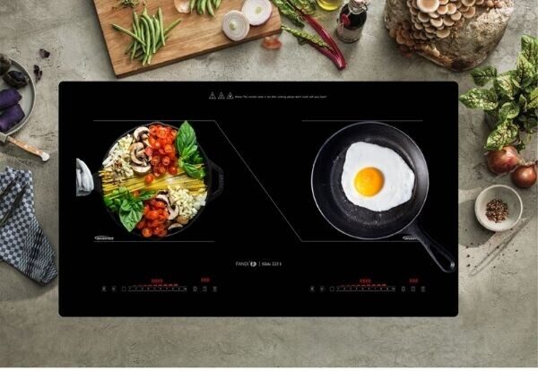 - Bếp từ Fandi FD- SLIDE 223I được tích hợp chức năng tự nhận diện vùng nấu, khi ta đặt nồi lên 1 trong 2 vùng nấu sau đó ấn nút khởi động bếp sau thời gian 1-2 giây bếp sẽ tự động tìm vùng nấu đã có nồi, ta chỉ việc điều chỉnh mức công suất to nhỏ theo ý muốn mà không phải thao tác chọn vùng nấu như bếp thông thường.