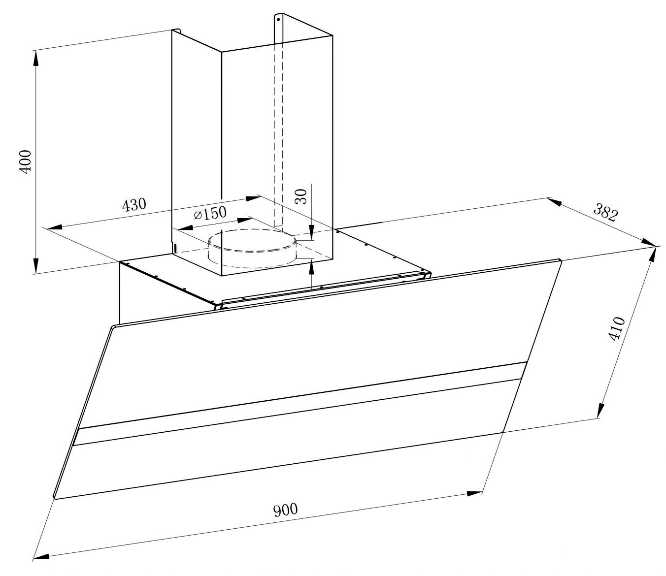 · Kích thước sản phẩm: 900mm (Ngang) x 420mm (Sâu) x 482-495mm (Cao). Một số nguồn ghi nhận chiều cao tổng thể có thể thay đổi từ 420-780mm tùy theo việc lắp đặt ốp ống khói.
