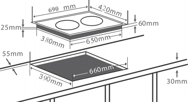 Bảo vệ quá nhiệt (cảm biến nhiệt độ tích hợp trong từng vùng nấu): Bếp được thiết kế cảm biến nhiệt độ dưới mỗi vùng nấu, khi có hiện tượng quá nhiệt ( nồi đun bị cạn, cháy,.. ) bếp sẽ chủ động ngắt công suất để đảm bảo an toàn cho thiết bị cũng như đảm bảo không sự cố đáng tiếc xảy ra.