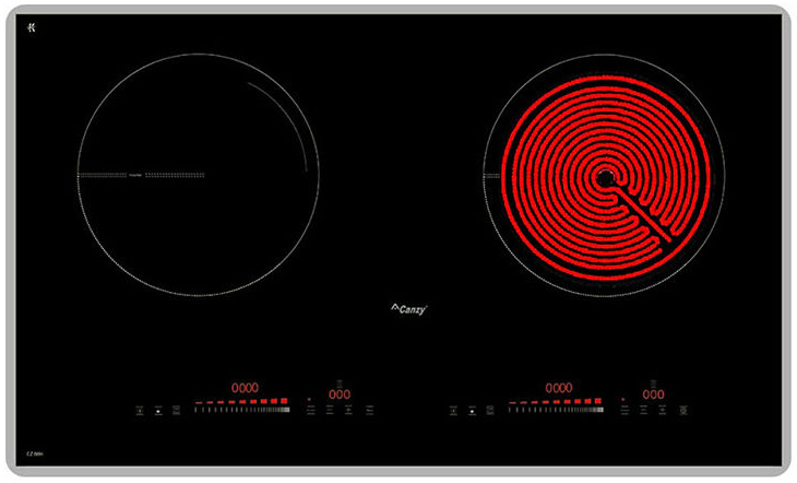 Bếp điện từ Canzy CZ E88 gồm 2 vùng nấu. Vùng nấu trái với công suất là 2000W khi kích hoạt tính năng nấu siêu nhanh Booster công suất lên tới 2400W, vùng nấu hồng ngoại phải sử dụng mâm nhiệt E.G.O Hilight với mức công suất tối đa là 2400W. Chức năng Booster nấu siêu nhanh, tuy nhiên thời gian tối đa mặc định dùng chức năng này là 10 phút/lần tránh quá tải.