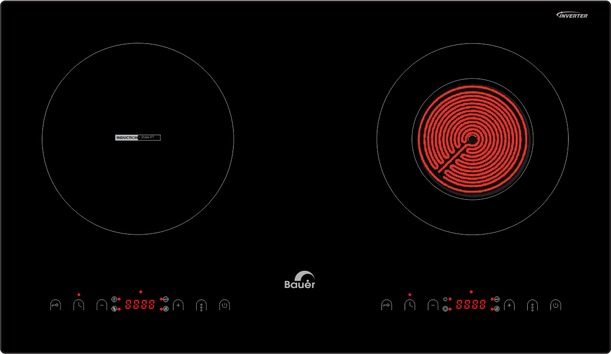 Bếp điện từ âm Bauer BE 326SES thiết kế với 2 vùng nấu riêng biệt. Vùng nấu từ có công suất 2000W, bên vùng nấu hồng ngoại có công suất 2300W sử dụng hệ mâm nhiệt E.G.O HILIGHT hai vòng nhiệt. Điều chỉnh linh hoạt, tận dụng được mọi kích cỡ xoong nồi. Mâm nhiệt này có khả năng sinh nhiệt tập trung, nhiệt phân bố đều trong vùng nấu.