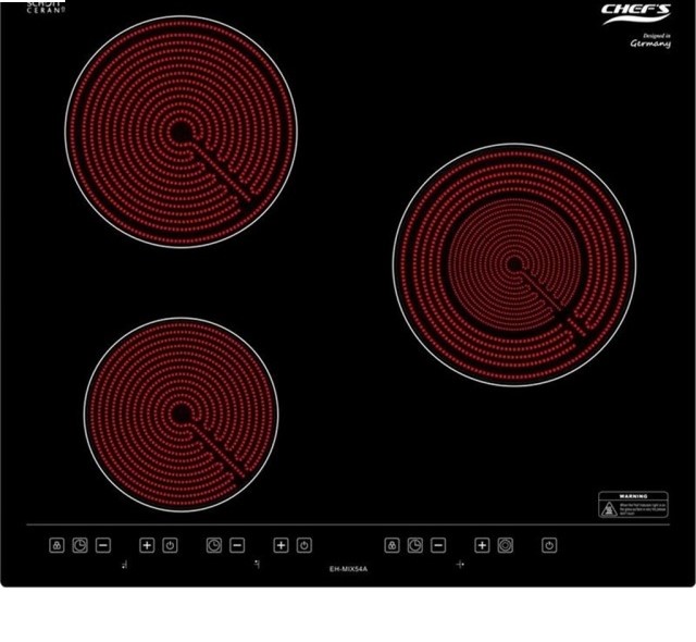 Bếp hồng ngoại Chefs EH-HL54 gồm 3 vùng nấu với với tổng công suất chia sẻ là 5400W. Vùng nấu hồng ngoại trái trang bị mâm nhiệt E.G.O Hi-Light với 03 vòng nhiệt có công suất làn lượt là 2200W - 2000W -1200W giúp người nội trợ nấu ăn nhanh, tiết kiệm đáng kể thời gian vào bếp.