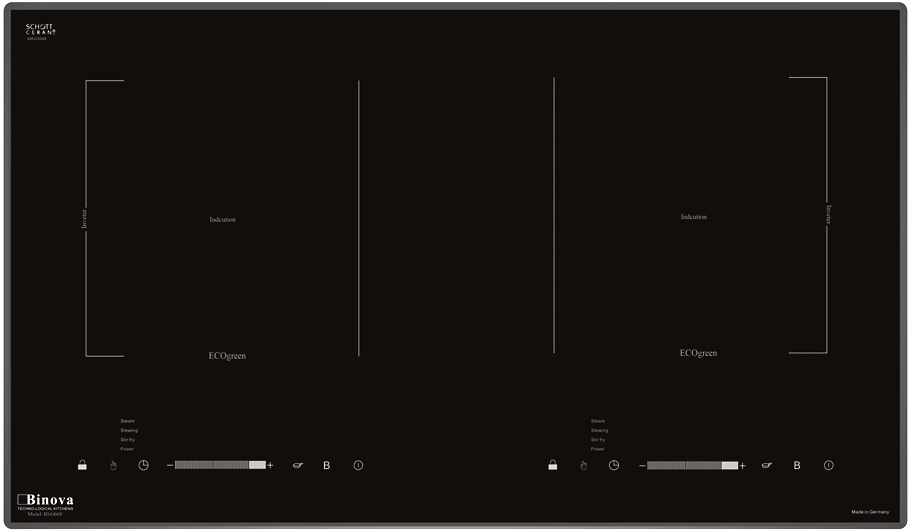 Bếp từ Binova BI G668 sử dụng mặt kính Schott Ceran nhập khẩu nguyên chiếc từ Đức, đường viền được vát cạnh tinh tế sang trọng. Mặt kính làm từ chất liệu gốm thủy tinh đã qua tôi luyện ở nhiệt độ cao. Nhờ đó khả năng chịu lực rất tốt, chịu sốc nhiệt lên tới 1000 độ C. Kính chống xước tốt, tản nhiệt nhanh, được cách điện an toàn với các linh kiện điện tử.