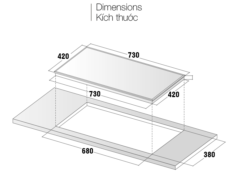 thước (dài x rộng x cao): 730 x 420 x 60mm