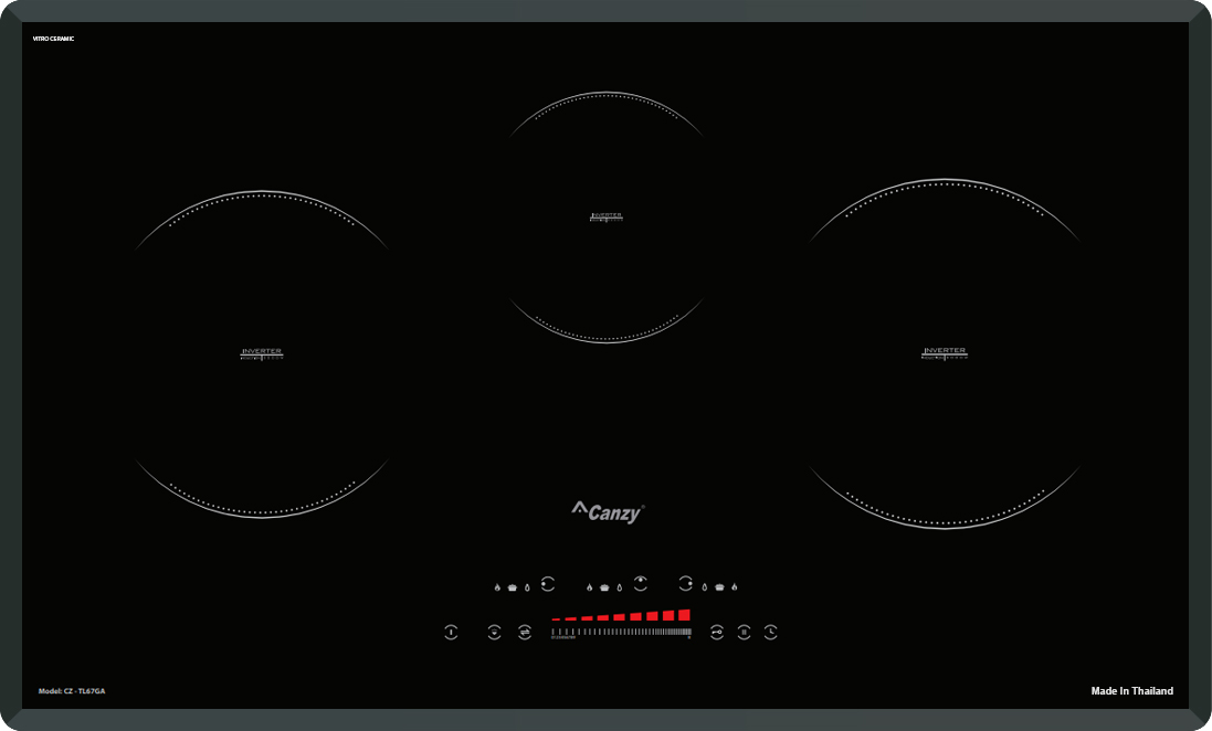 Bảo vệ quá nhiệt (cảm biến nhiệt độ tích hợp trong từng vùng nấu): Bếp từ Canzy CZ TL67GA được thiết kế cảm biến nhiệt độ dưới mỗi vùng nấu, khi có hiện tượng quá nhiệt ( nồi đun bị cạn, cháy,.. ) bếp sẽ chủ động ngắt công suất để đảm bảo an toàn cho thiết bị cũng như đảm bảo không sự cố đáng tiếc xảy ra.