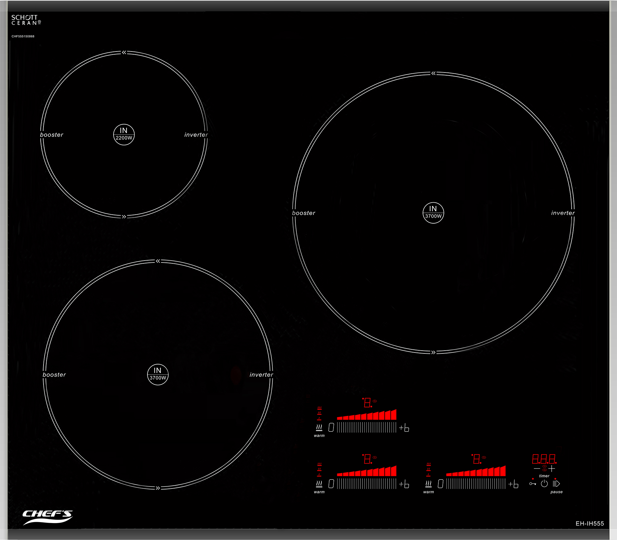 Hẹn giờ giới hạn thời gian hoạt động: Bếp từ Chefs EH-IH555 có khả năng hẹn giờ độc lập từng vùng nấu từ 00-99 phút, người dùng có thể dễ dàng thiết lập thời gian đun nấu, bếp sẽ tư động ngắt khi hết thời gian đã được cài đặt.