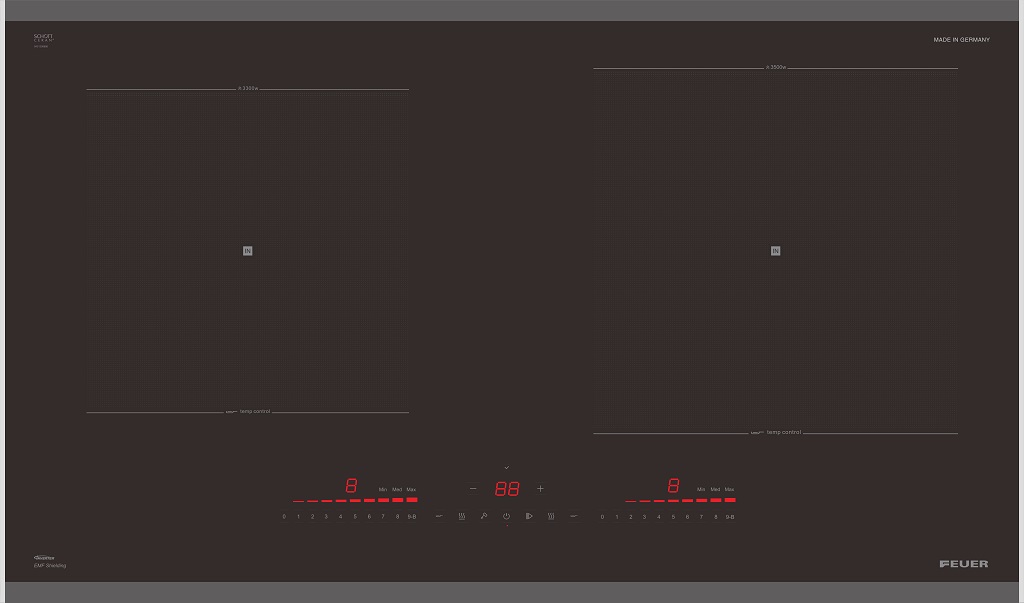 Bếp từ Feuer F88 Pro Max gồm 2 vùng nấu với tổng công suất 4800W với công suất mỗi vùng nấu làn lượt là 2200W/Booster 3300W và 2200W/ Booster 3500W. Do đó, các món ăn được nấu chín nhanh hơn, tiết kiệm thời gian vào bếp cho chị em nội trợ.