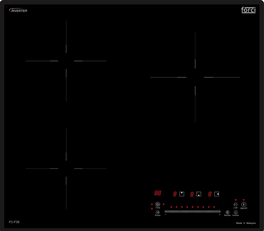 Ba mâm từ tự động nhận biết kích cỡ xoong nồi và chất liệu của xoong nồi
