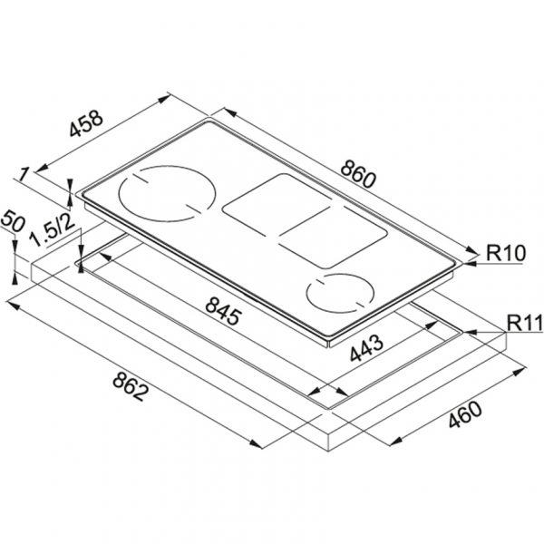 | Thông số kỹ thuật | – Tổng công suất: 7400w. – Kích thước: 860 x 458mm. – Kích thước mặt cắt đá: 845 x 443mm. – Màu sắc: Màu Champagne viền Inox. |