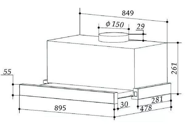 Máy được thiết kế với thân bằng vật thép chống gỉ tạo độ bền cao cho máy, kiểu dáng sang trọng với kích thước 90cm phù hợp với nhiều không gian bếp Việt. Đây là loại máy hút mùi có công suất cao trong các loại máy hút mùi âm tủ, công suất tối đa của máy lên đến 900m3/h với 3 tốc độ hút khác nhau dễ dàng điều chỉnh bằng phím cảm ứng.