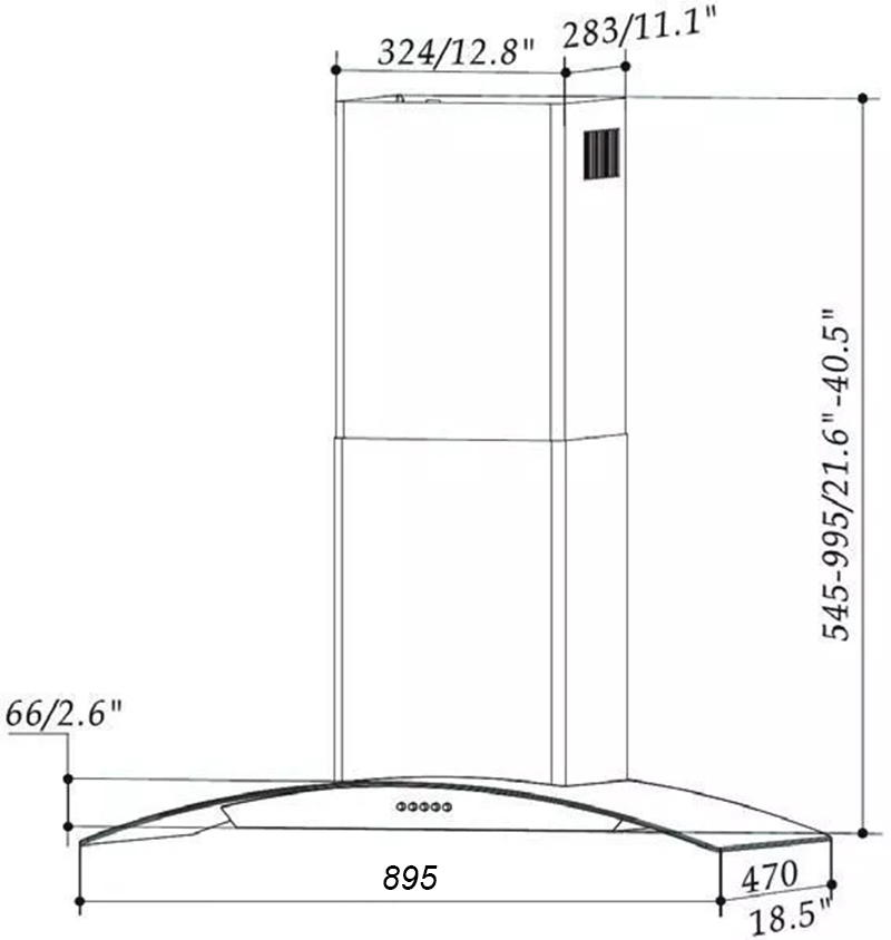 Thân máy hút mùi Eurogold EUH02390 mang thiết kế kính cong với chất liệu inox và kính